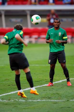 A lista tem Júlio César no gol, Daniel Alves na lateral direita, Thiago Silva na zaga e David Luiz jogando como lateral esquerdo; Paulinho integra o meio de campo, enquanto Neymar e Fred atuam no ataque.